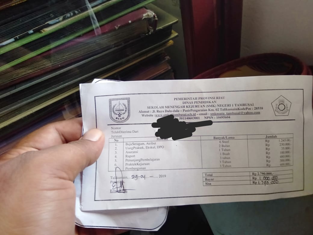 SMKN 1 Tambusai Kutip Uang Pendaftaran Sekolah, Kepsek: Kami Belum Dapat Surat Pelarangan